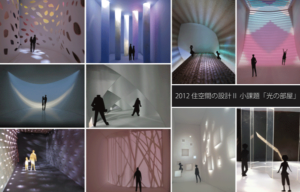 2012.10.12 2年生の設計製図「住空間の設計U」 小課題『光の部屋』![]() 2年生秋学期「住空間デザインコース」の科目「住空間の設計U」の小課題として、『光の部屋』の制作を行いました。 幅+奥行き+天井高=20mの直方体に内接する一室空間を条件に、外からの光によって演出されるインテリア空間を1/30の模型で制作して、その内観を1枚の写真におさめます。空間のかたちや素材、開口部のつくり方を工夫して、透過光、反射光、陰影など光の効果を確かめながら制作しました。 ※左上より下へ、石澤安弥人君、渋川裕生君、南憲明君、中野萌美さん、能城匠君、國井俊大君、長谷川祥子さん、横山和嵩君、志賀優美さん、山本浩太朗君の作品 (この課題は、小嶋一浩・伊藤香織・小池ひろの・高安重一 編著「空間練習帳」(彰国社)を参考にしています。) |