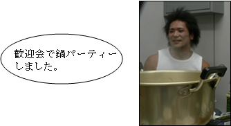 9月から新メンバーで加わった筋肉人間です。さっそく筋トレ部キャプテンの座を狙ってるそうです。イノッチ危い!!(>_<) でも、筋肉痛は2日後に… 最近、バイト先で食べた豆腐ハンバーグがマズかったらしい(^^;) 課題・就職・卒業に向けて頑張っています!! |